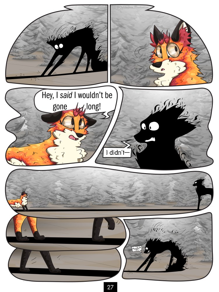 Part 1: The Fox and Her Shadow – Page 27 Back Next ©2019-2024 Ophiuchus Illustration. All rights reserved. WordPress Instagram YouTube Like Loading...